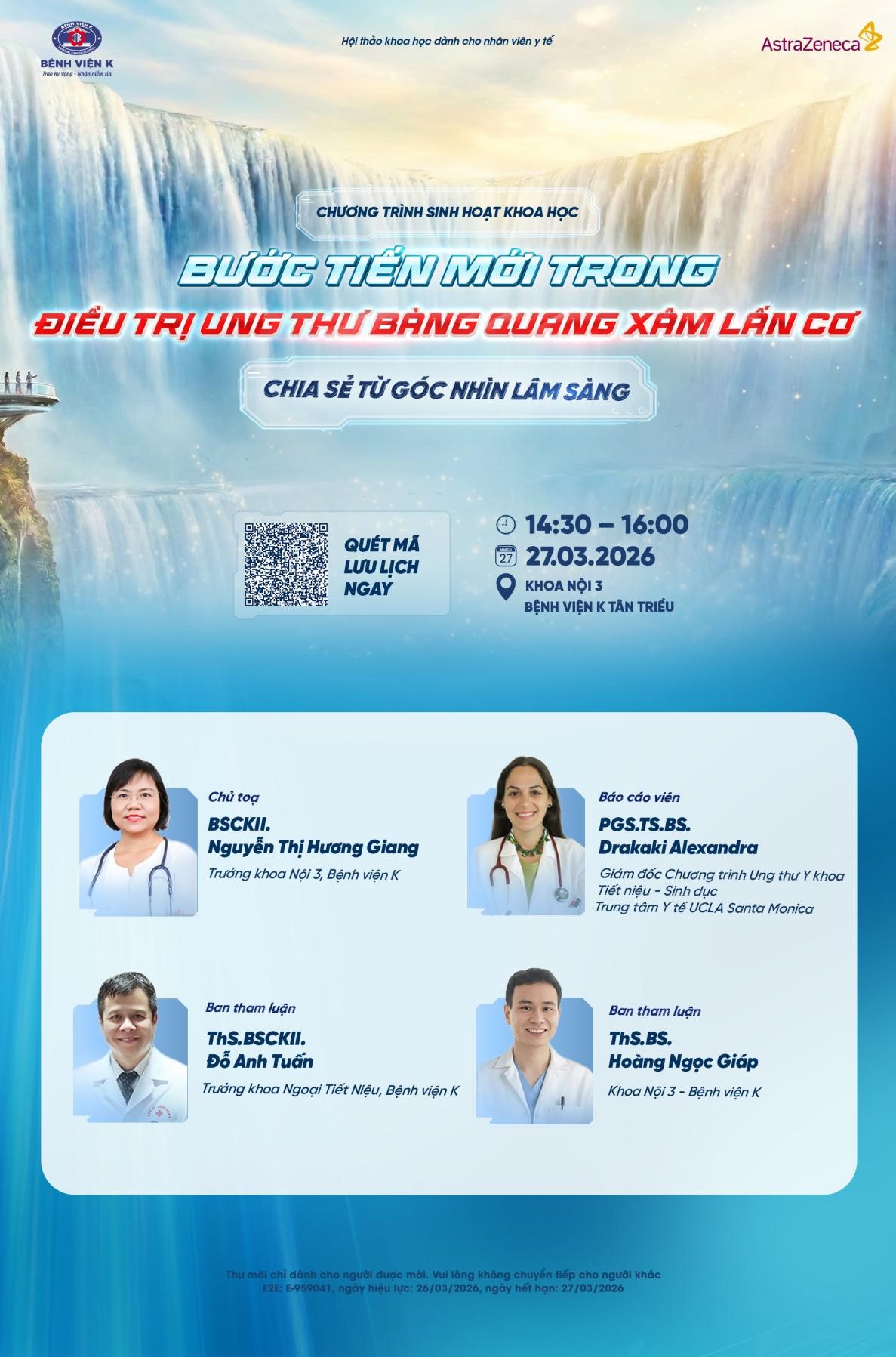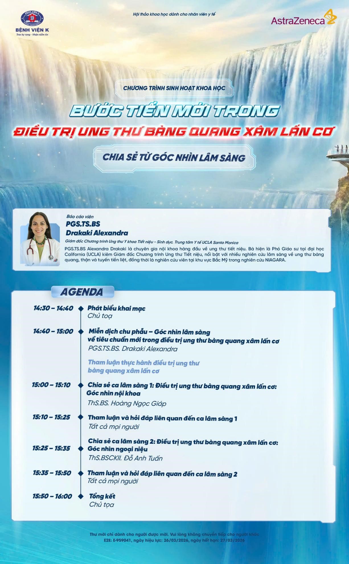 Trân trọng kính mời Quý Bác sĩ, Dược sĩ tham dự chương trình sinh hoạt khoa học “Bước tiến mới trong điều trị ung thư bàng quang xâm lấn cơ – chia sẻ từ góc nhìn lâm sàng” vào lúc 14:30 – 16:00, thứ Sáu ngày 27/03/2026